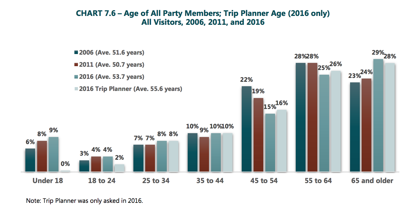 Nearly half of visitors (44%) in the same survey reported that they were retired or semi-retired.