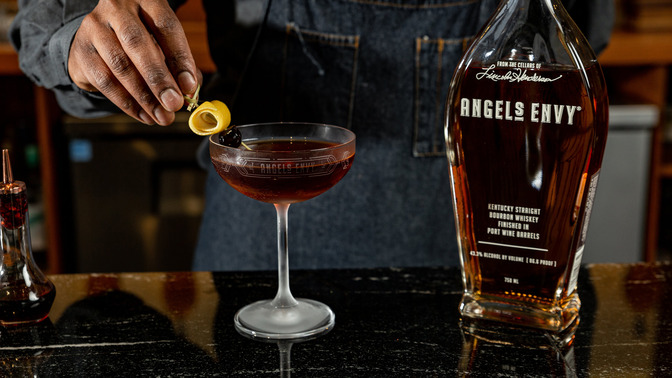 The versatility of ANGEL’S ENVY extends beyond its giftable nature. While savoring it neat allows you to appreciate the full spectrum of flavours, it’s also a star player in the world of mixology. Craft cocktails have experienced a renaissance of their own in recent years, and ANGEL’S ENVY has become a darling of mixologists and home bartenders alike. Its rich and complex flavours provide an ideal canvas for creating innovative cocktails or a classic libation as a hero ingredient, like the Manhattan.