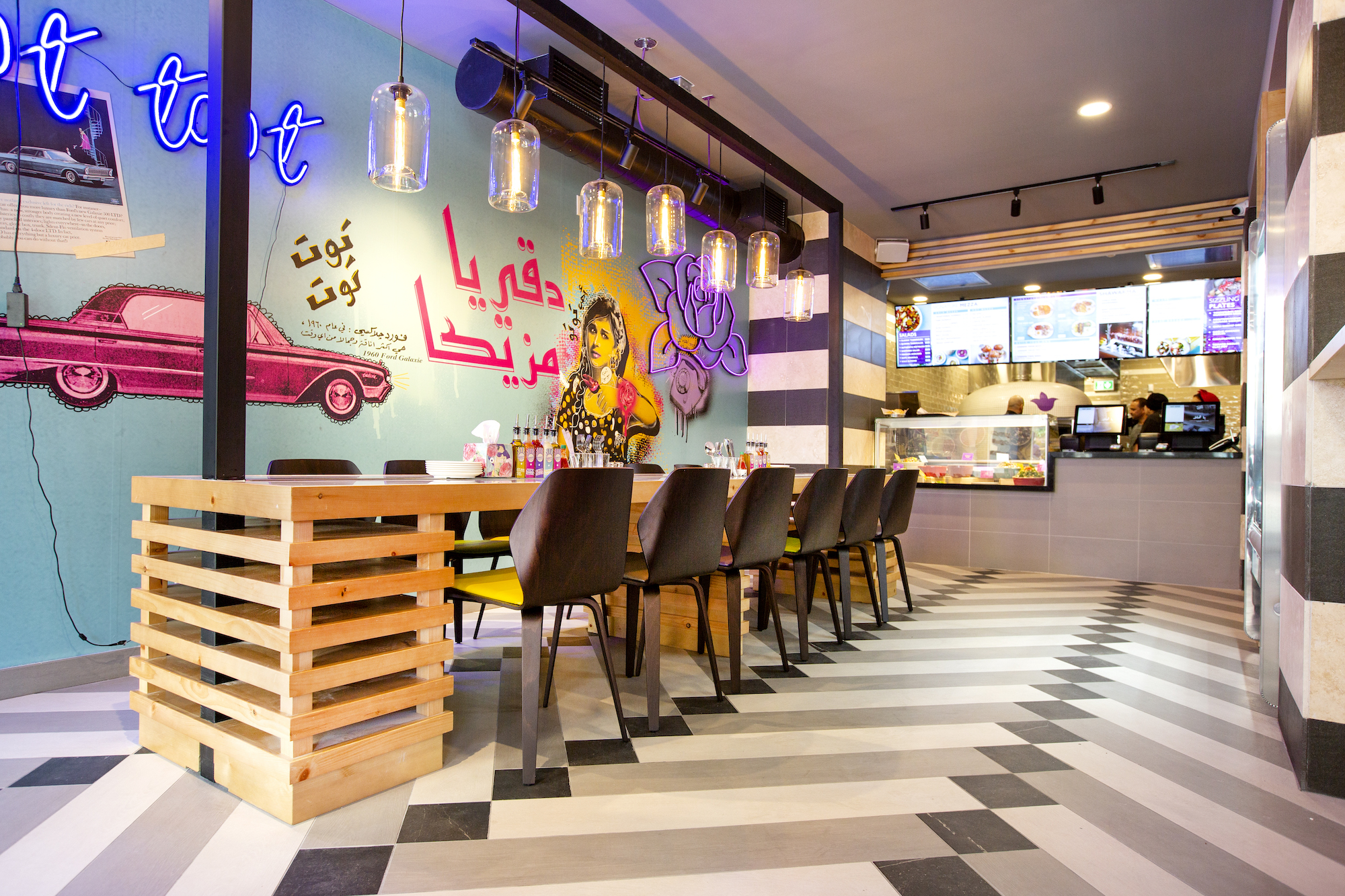 With locations in the United Arab Emirates, Qatar, Saudi Arabia, Jordan, Palestine, Iraq and Kurdistan, Azkadenya’s Toronto location is the first iteration of the chain outside the Middle Eastern region and in North America. This Tapas style fast casual restaurant, located steps from the Financial District transports diners into a ’60s golden era Arab pop art world. Vibrant murals splashed across the walls and eclectic accents in and around the dining areas help the eye will wander — at Azkadenya, so will tastebuds.