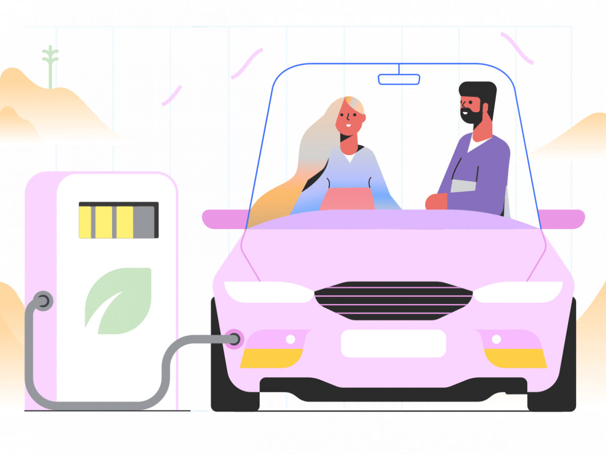 A graphic if a car being filled with a designated biofuel to represent how EverGen is making Renewable Natural Gas.