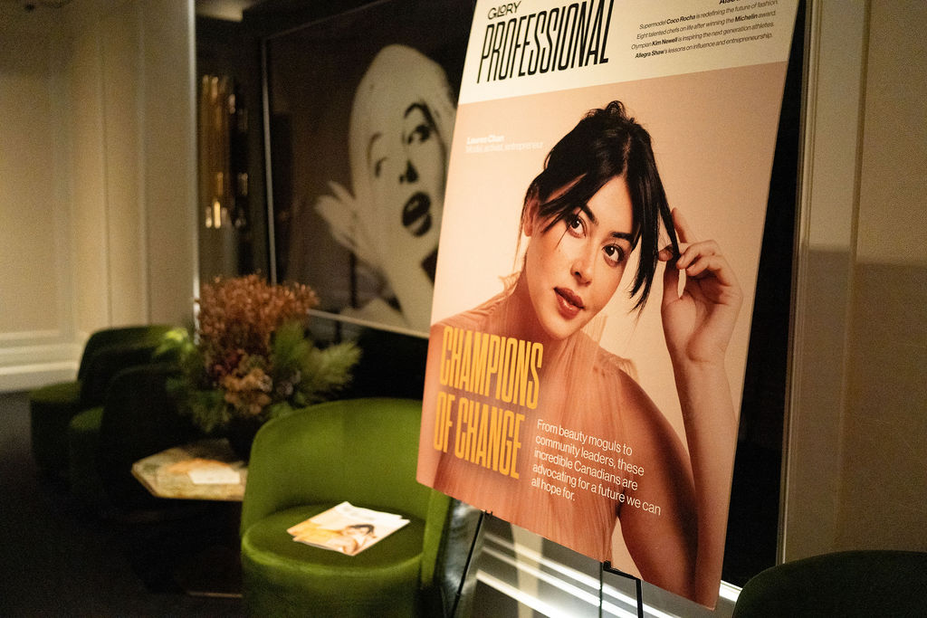 GLORY Media’s 2023 Champions of Change issue launch at Toronto’s Bisha Hotel exuded charm and elegance. Flying in from New York, guest of honour, Lauren Chan, arrived in style to celebrate her cover. Presenting sponsor, Veuve Clicquot, set a sophisticated tone and was complemented by partners Gaultier Divine, Rado, and Barbet.
