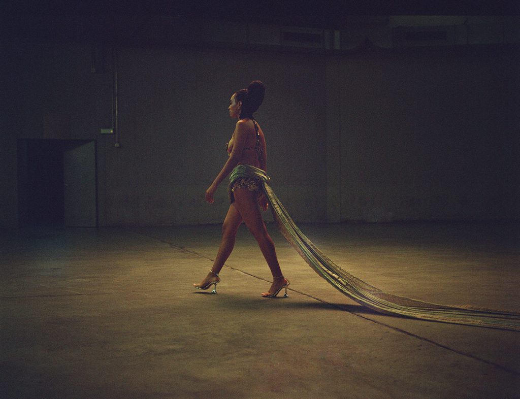 “Time and space are really at the foundation of my expressions,” says Solange. “I’m a strong believer that the space and time surrounding our work is just as important as the work itself. […] These ideas align with what is being expressed with LOUIS XIII’s creation, Believe in Time.” She continues, “The question of time is always in my container of consciousness while creating. Most of my own work, whether it be music, film, or sculpture, I try to give thought on how future generations will discover it, and so, to be aligned on these ideas gave me great interest in the type of projects LOUIS XIII has been creating. I’ve been a huge fan of Mati Diop’s ‘Atlantics,’ and Guo Pei’s incredible craftsmanship, and jumped at the conversations to collaborate with them.”