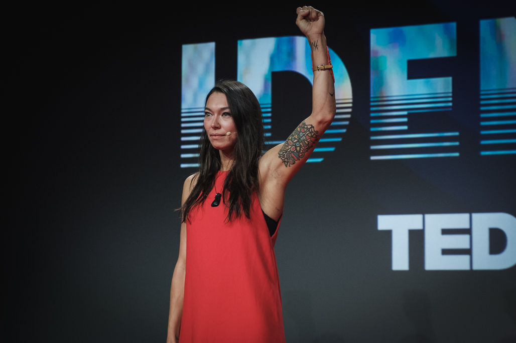 Sarain Fox speaking at the 2018 TEDxToronto conference. (Photo credit: Joshua Best, provided by TEDxToronto)